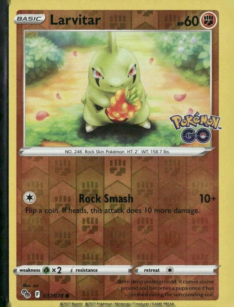 This is a nice example of a Pokemon GO #037/078 Larvitar Reverse Holo