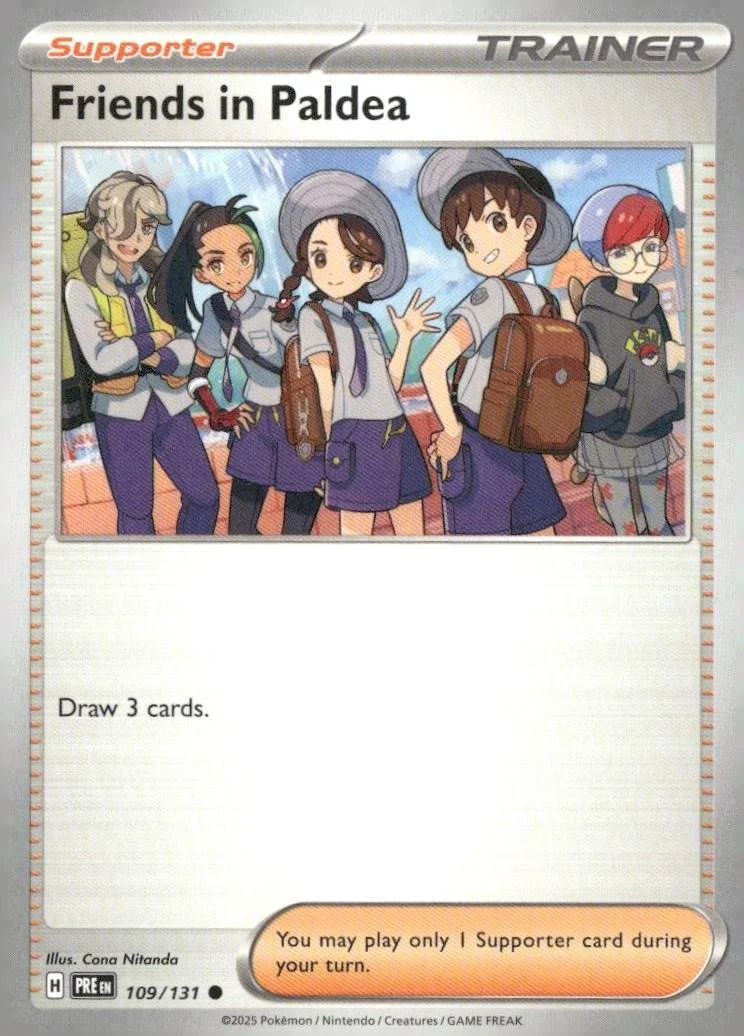 This is a nice example of a SV: Prismatic Evolutions #109/131 Friends in Paldea