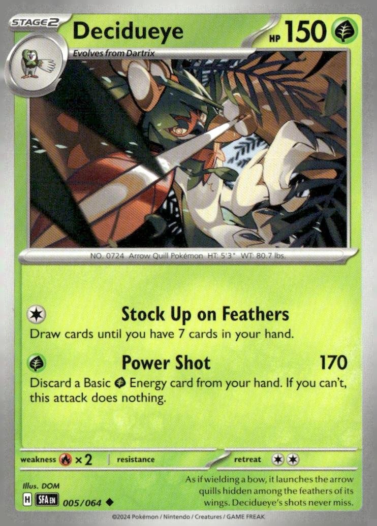 This is a nice example of a SV: Shrouded Fable #005/064 Decidueye