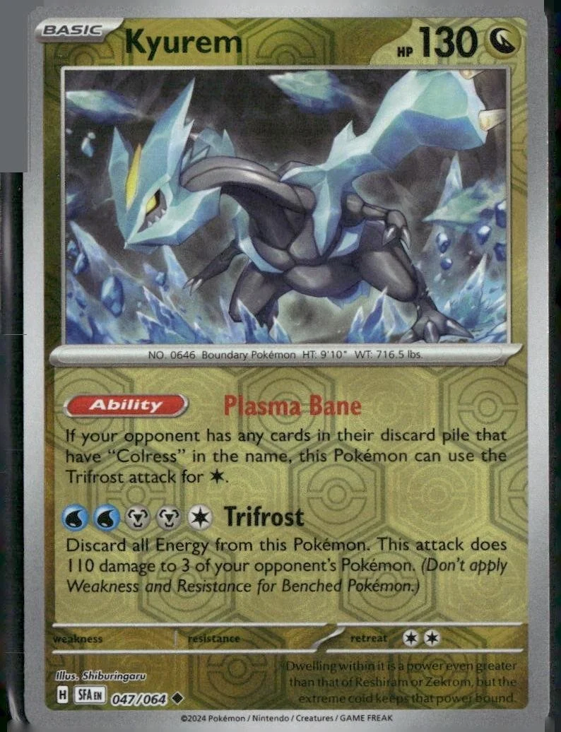 This is a nice example of a SV: Shrouded Fable #047/064 Kyurem Reverse Holo