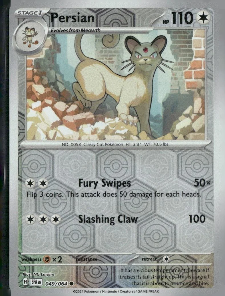 This is a nice example of a SV: Shrouded Fable #049/064 Persian Reverse Holo