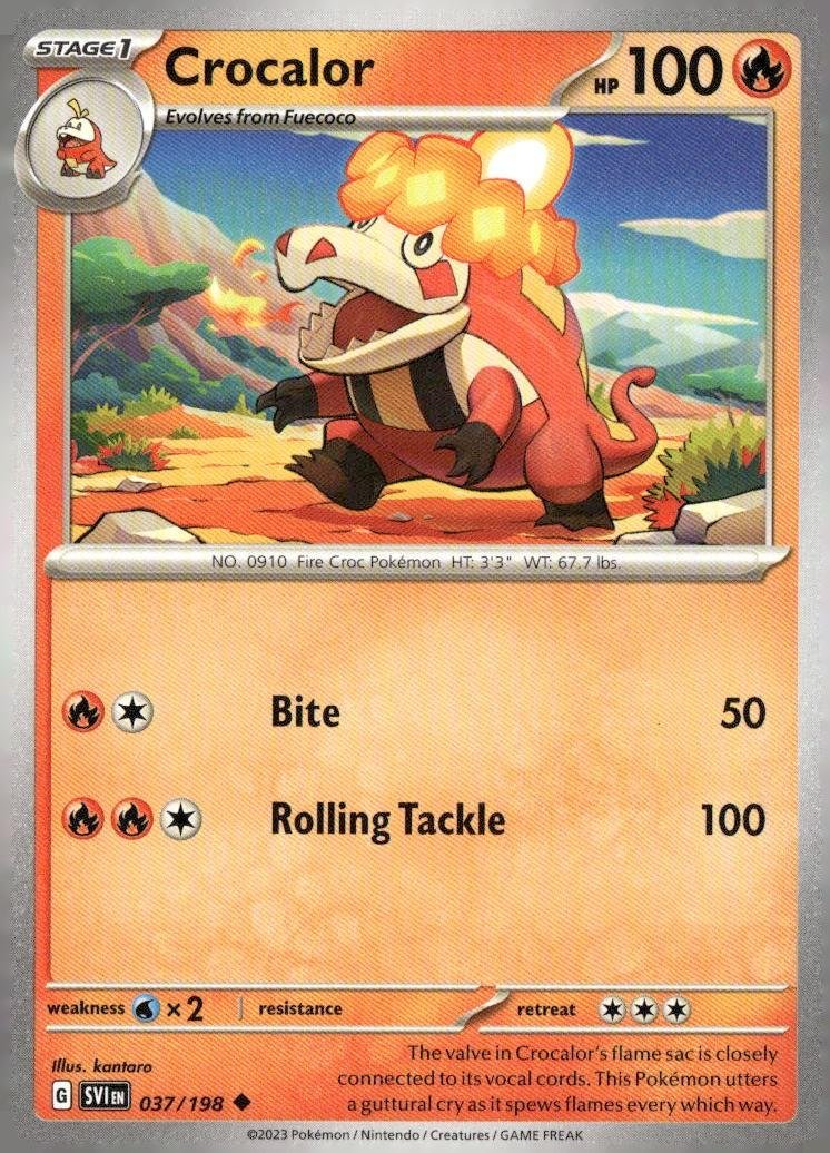 This is a nice example of a SV01: Scarlet & Violet Base Set #037/198 Crocalor