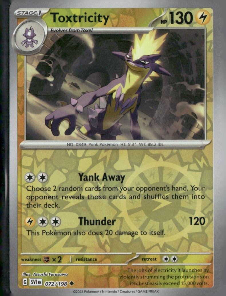This is a nice example of a SV01: Scarlet & Violet Base Set #072/198 Toxtricity Reverse Holo