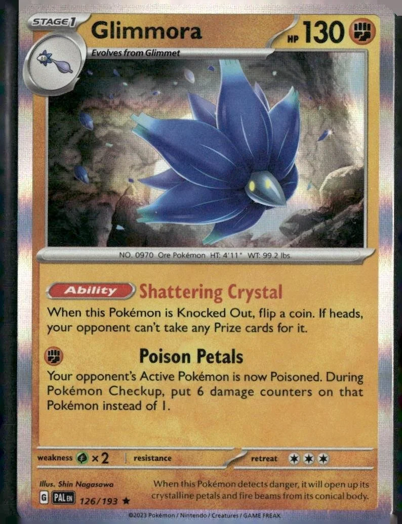 This is a nice example of a SV02: Paldea Evolved #126/193 Glimmora Holo