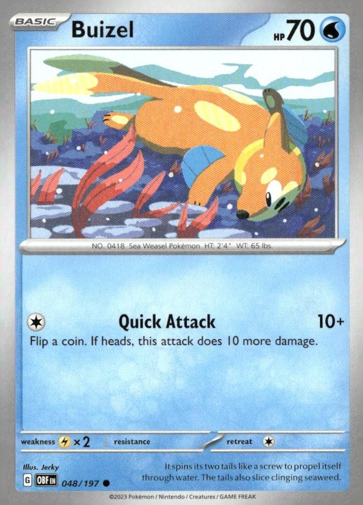 This is a nice example of a SV03: Obsidian Flames #048/197 Buizel