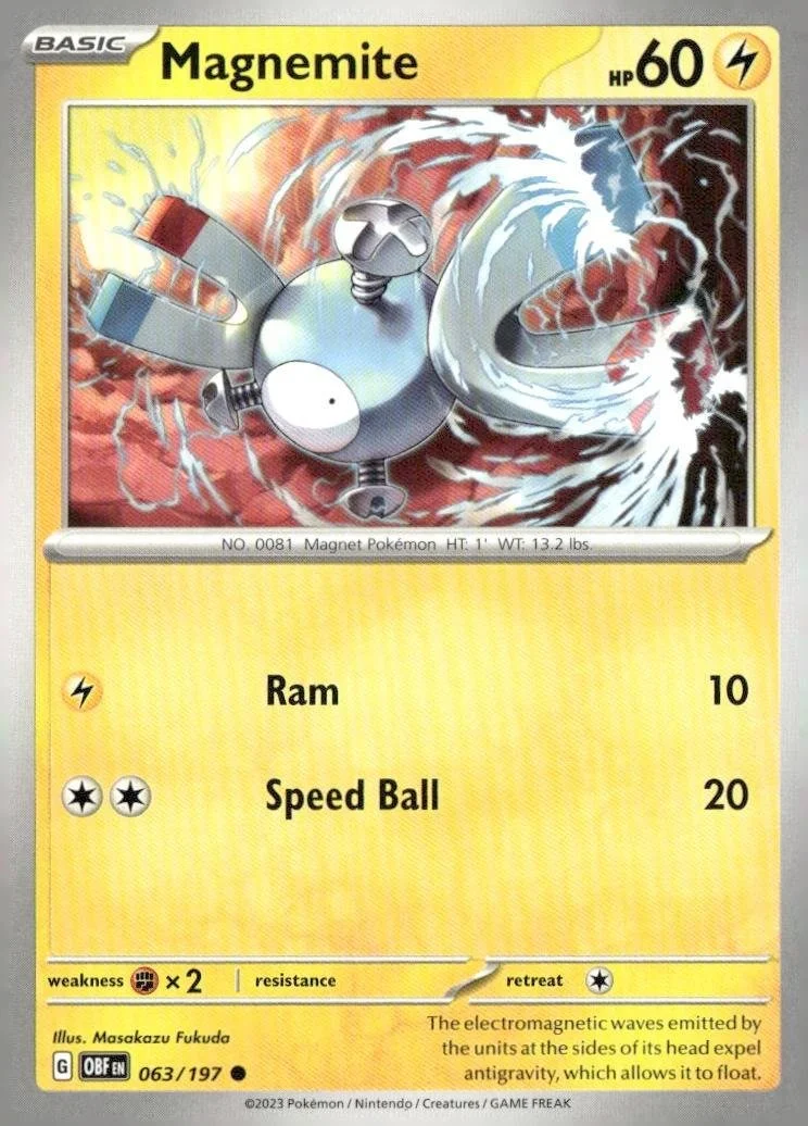 This is a nice example of a SV03: Obsidian Flames #063/197 Magnemite