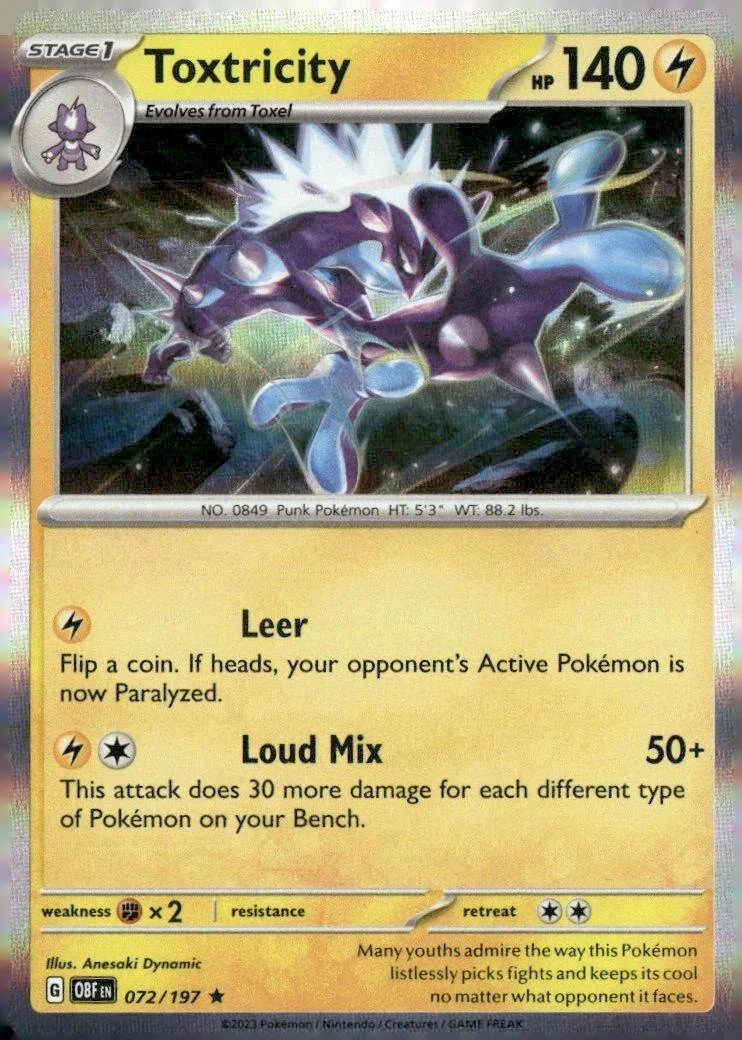 This is a nice example of a SV03: Obsidian Flames #072/197 Toxtricity