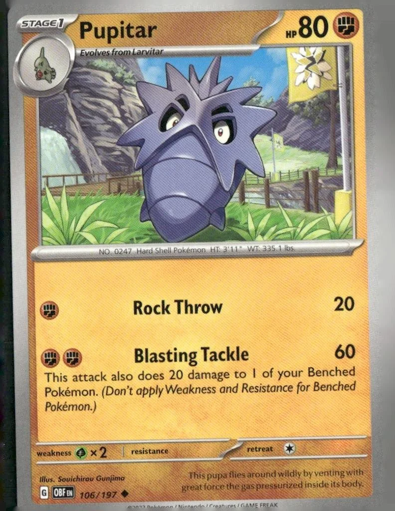 This is a nice example of a SV03: Obsidian Flames #106/197 Pupitar