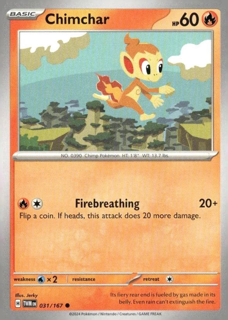 This is a nice example of a SV06: Twilight Masquerade #031/167 Chimchar