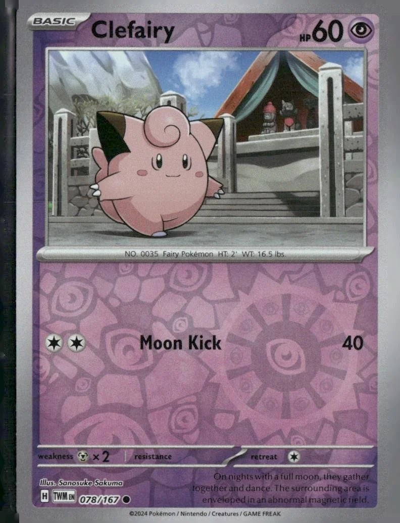 This is a nice example of a SV06: Twilight Masquerade #078/167 Clefairy Reverse Holo