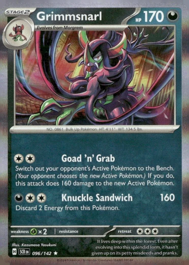 This is a nice example of a SV07: Stellar Crown #096/142 Grimmsnarl