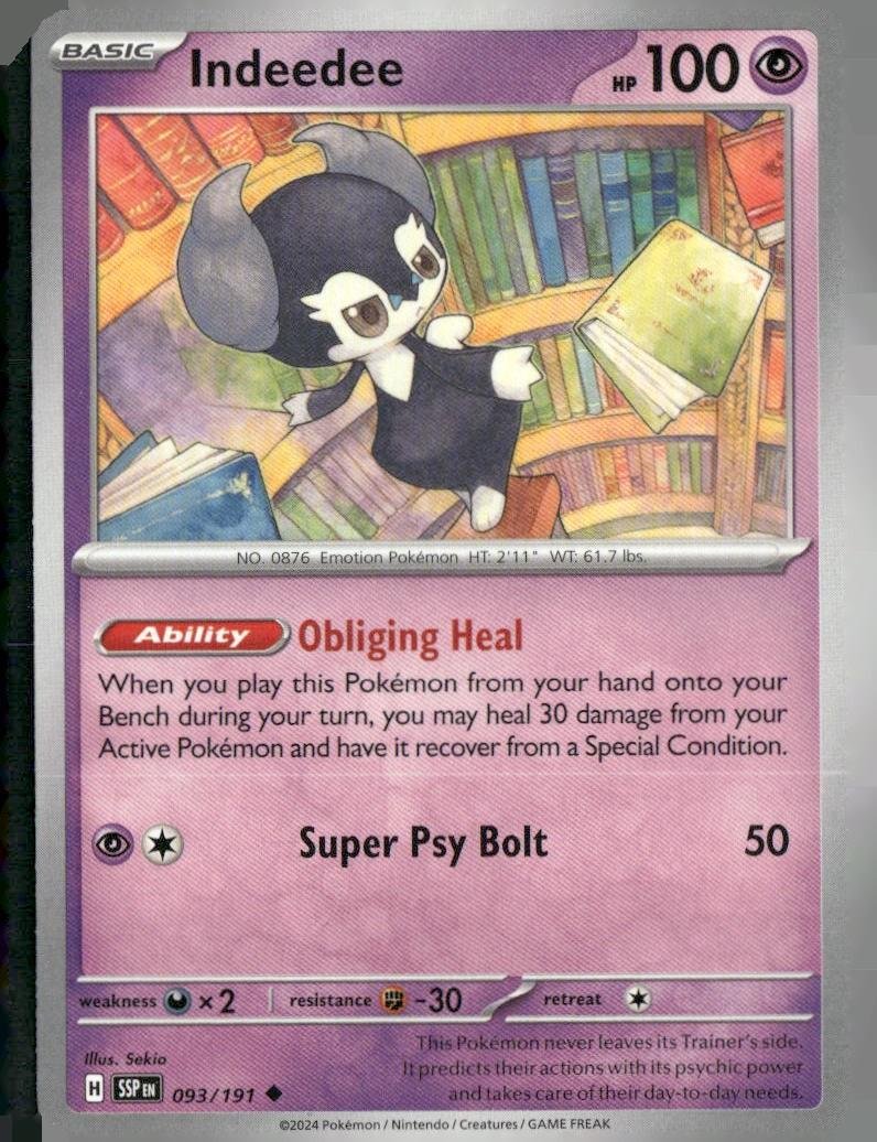 This is a nice example of a SV08: Surging Sparks #093/191 Indeedee