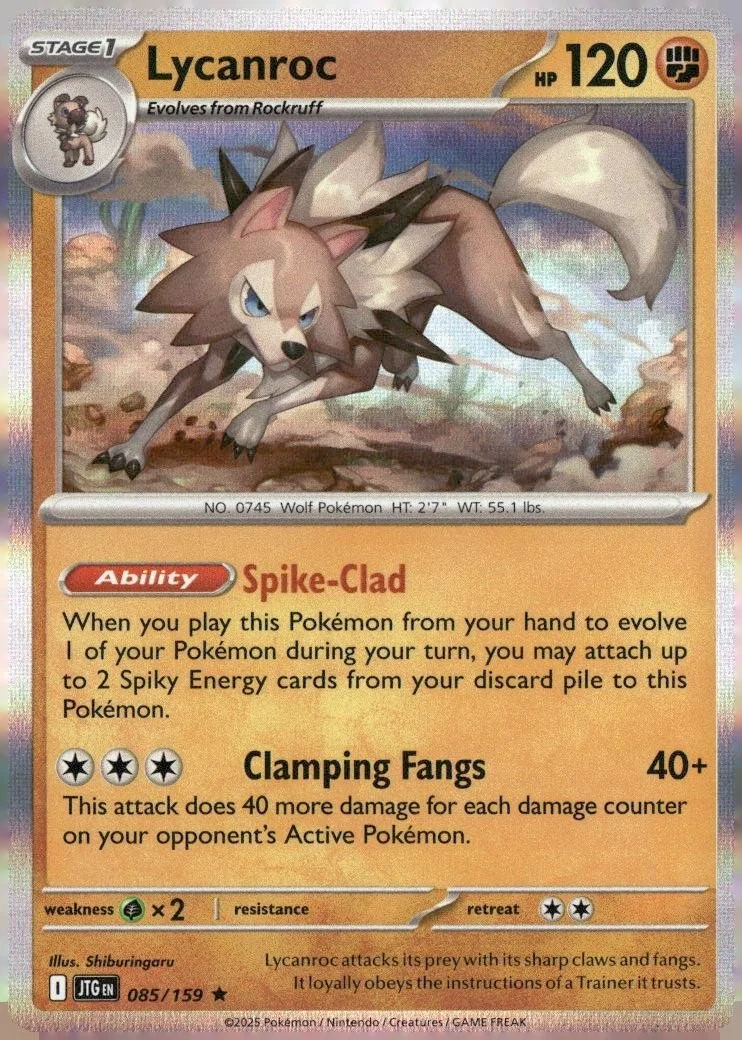 This is a nice example of a SV09: Journey Together #085/159 Lycanroc Holo