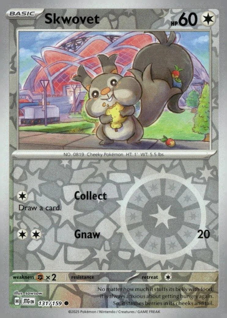 This is a nice example of a SV09: Journey Together #131/159 Skwovet Reverse Holo