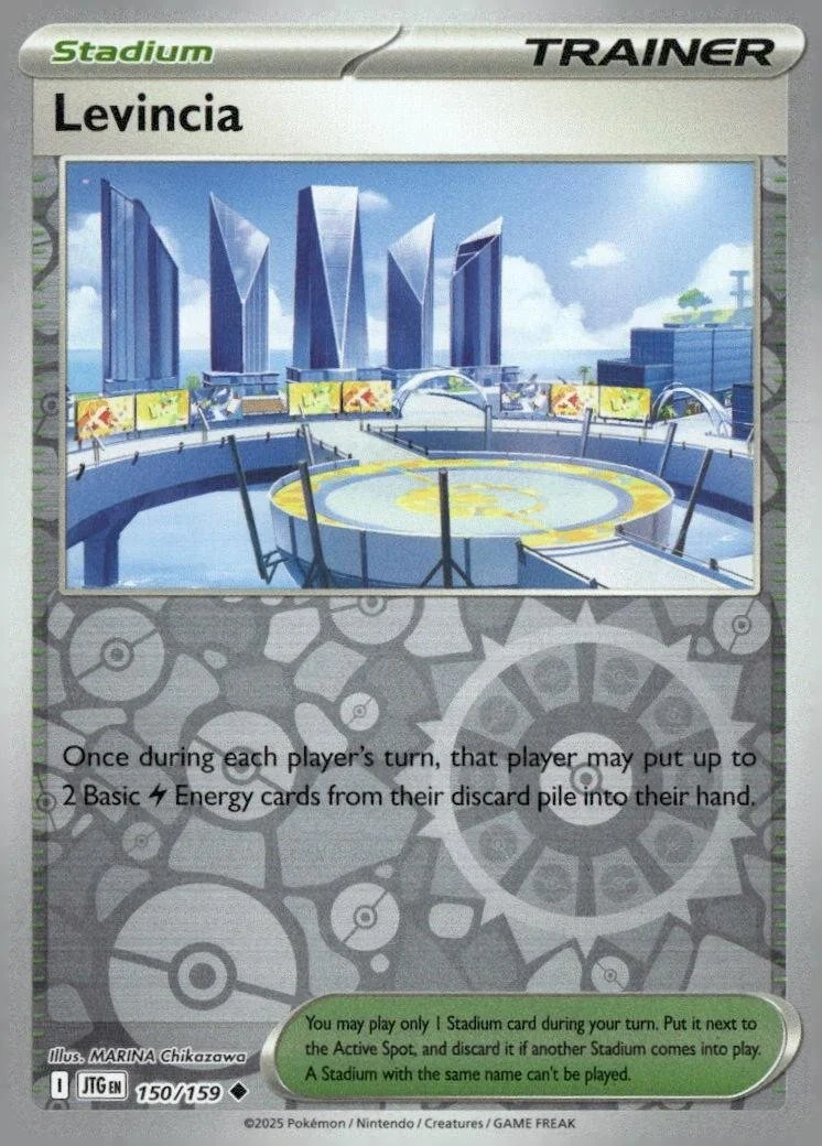 This is a nice example of a SV09: Journey Together #150/159 Levincia Reverse Holo
