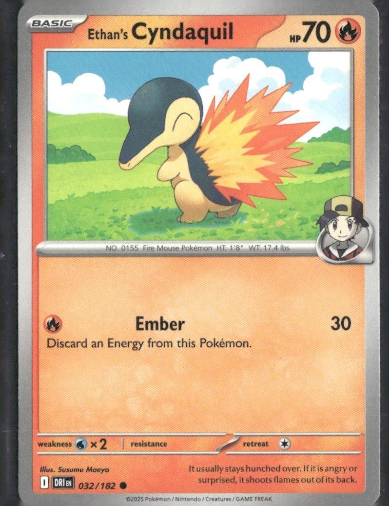 This is a nice example of a SV10: Destined Rivals #032/182 Ethan's Cyndaquil