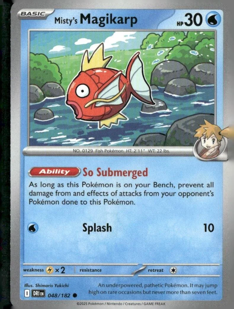 This is a nice example of a SV10: Destined Rivals #048/182 Misty's Magikarp