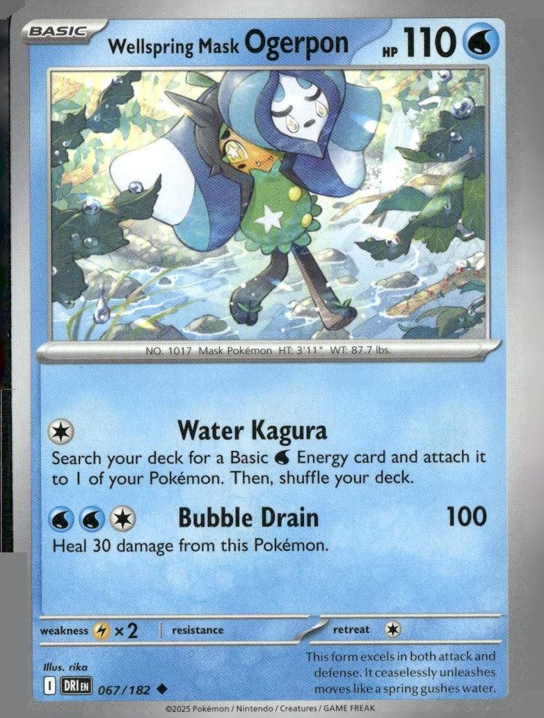 This is a nice example of a SV10: Destined Rivals #067/182 Wellspring Mask Ogerpon