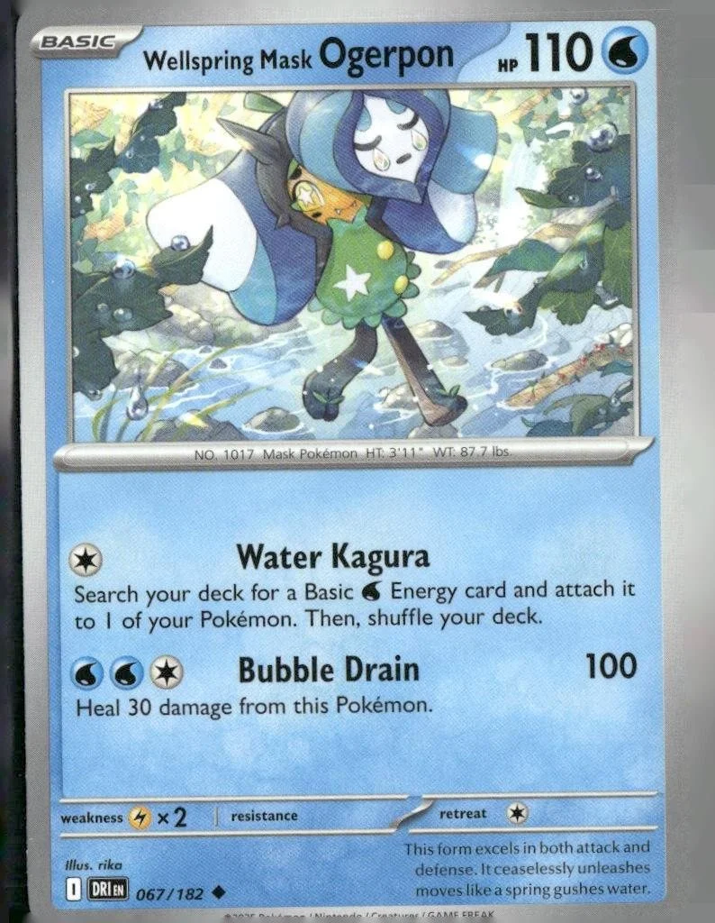 This is a nice example of a SV10: Destined Rivals #067/182 Wellspring Mask Ogerpon