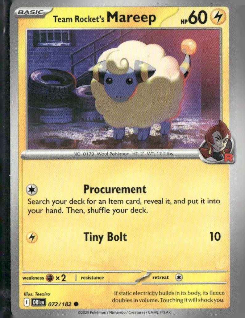 This is a nice example of a SV10: Destined Rivals #072/182 Team Rocket's Mareep