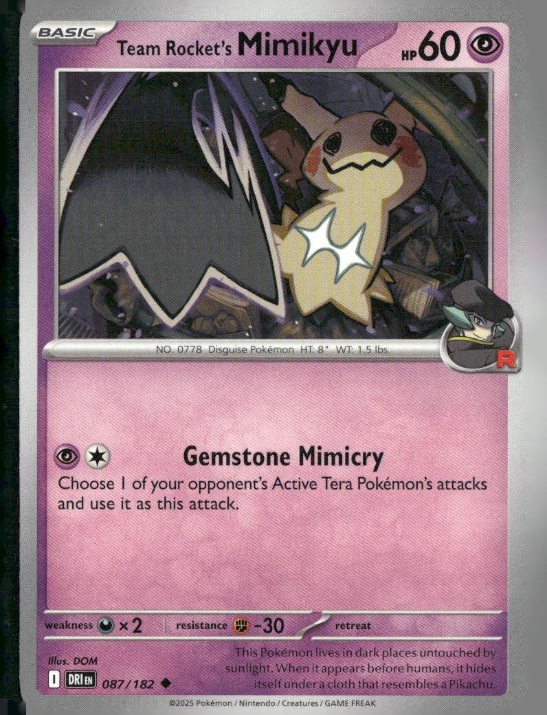 This is a nice example of a SV10: Destined Rivals #087/182 Team Rocket's Mimikyu