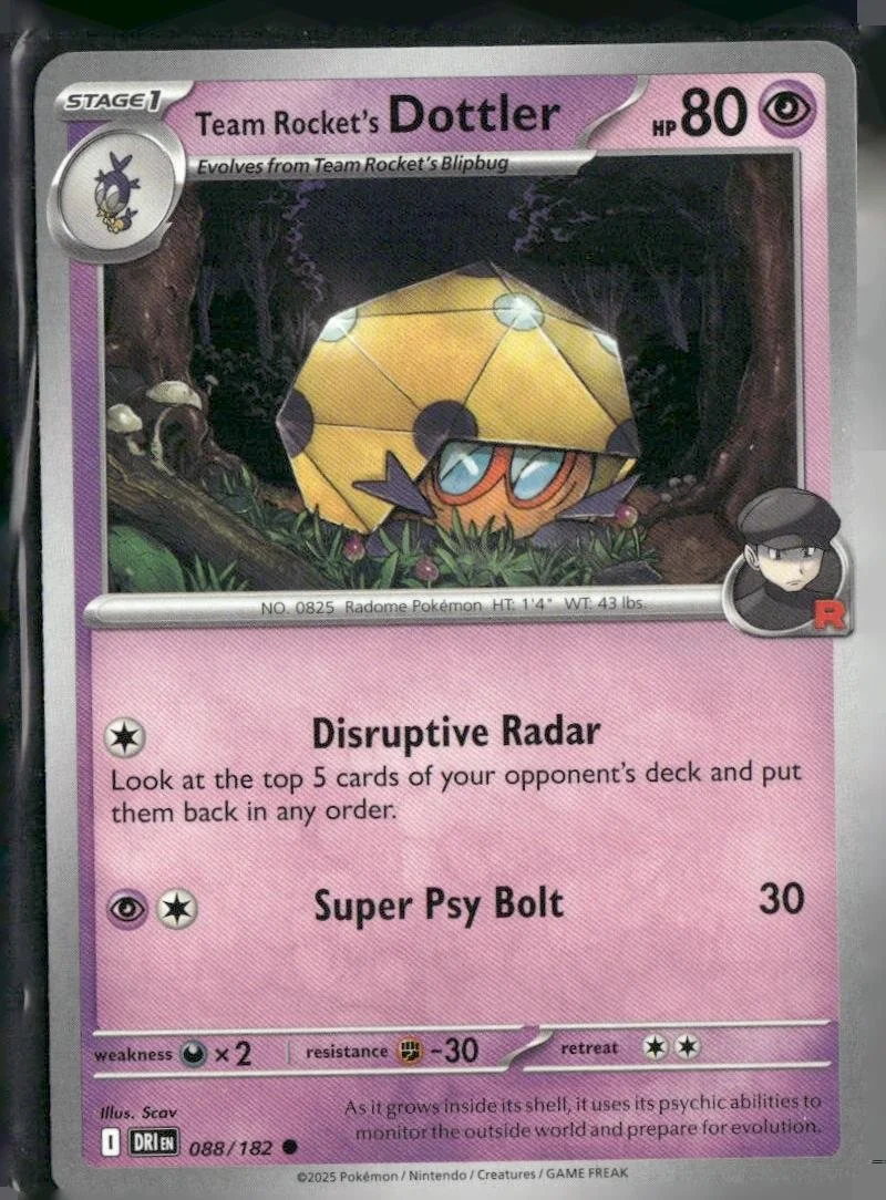 This is a nice example of a SV10: Destined Rivals #088/182 Team Rocket's Dottler