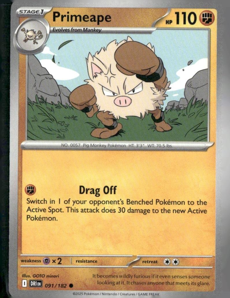 This is a nice example of a SV10: Destined Rivals #091/182 Primeape