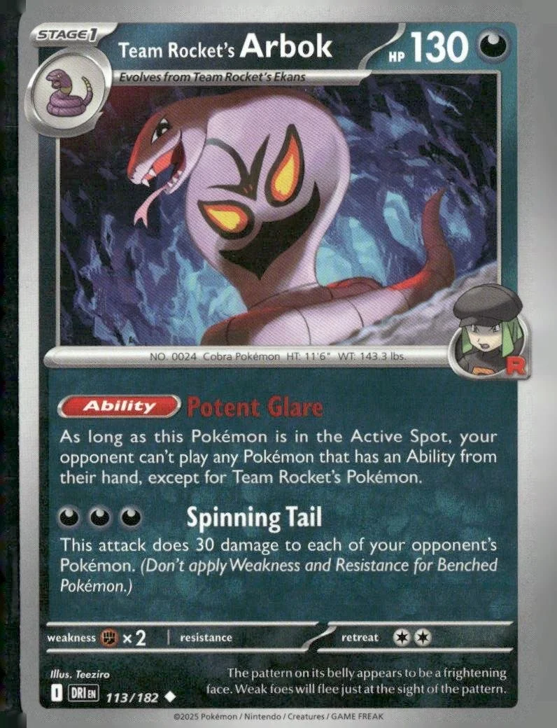 This is a nice example of a SV10: Destined Rivals #113/182 Team Rocket's Arbok