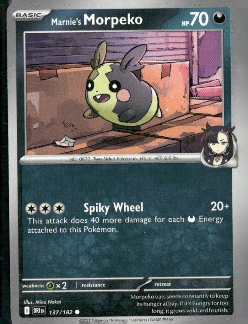 This is a nice example of a SV10: Destined Rivals #137/182 Marnie's Morpeko