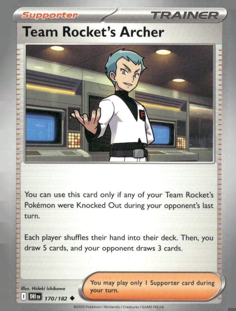This is a nice example of a SV10: Destined Rivals #170/182 Team Rocket's Archer
