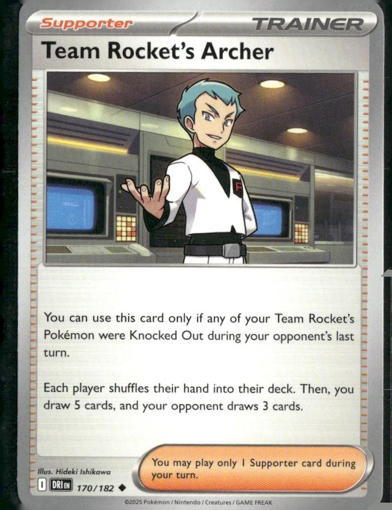 This is a nice example of a SV10: Destined Rivals #170/182 Team Rocket's Archer