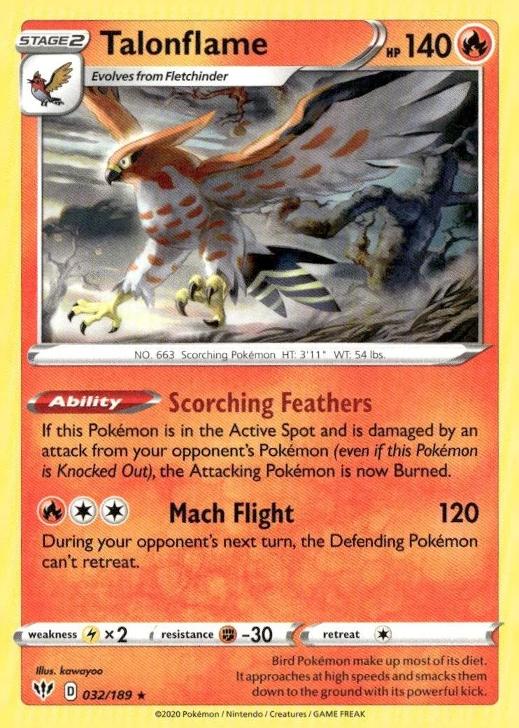 This is a nice example of a SWSH03: Darkness Ablaze #032/189 Talonflame