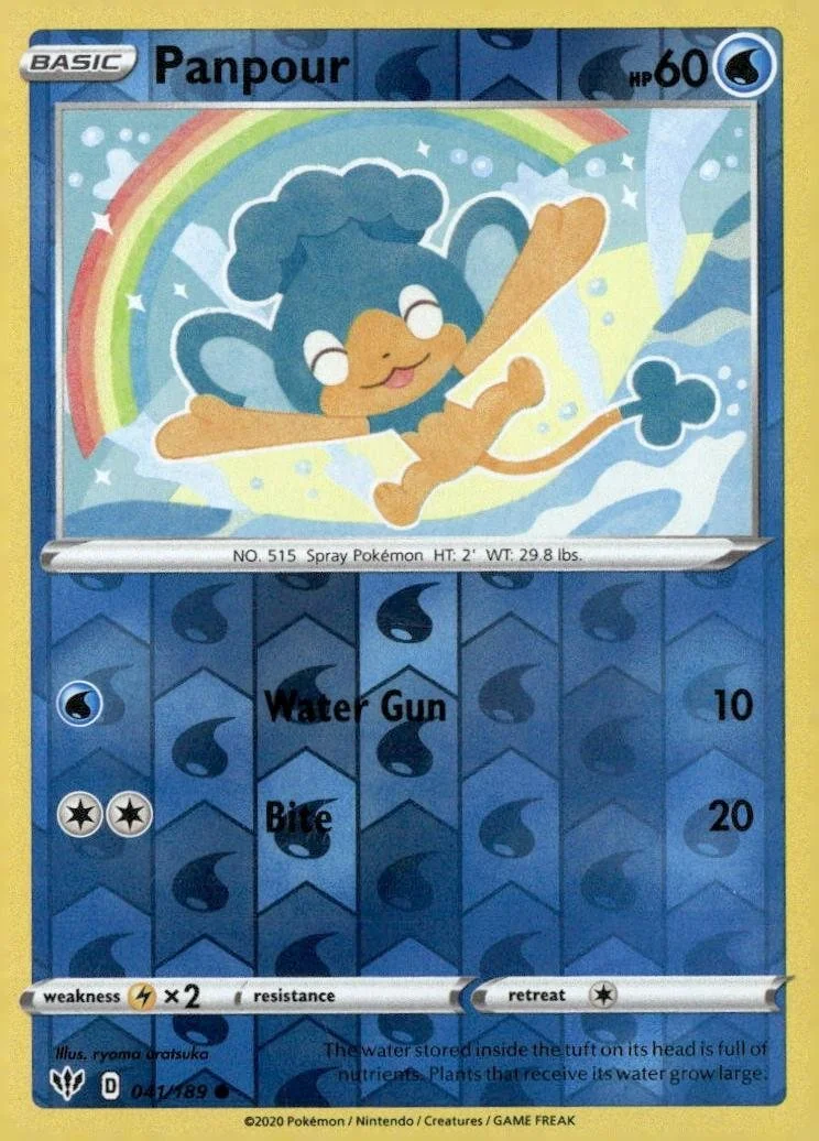 This is a nice example of a SWSH03: Darkness Ablaze #041/189 Panpour Reverse Holo