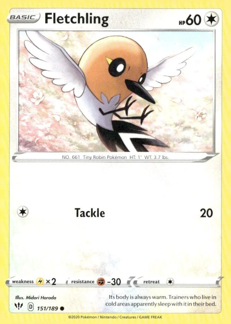 This is a nice example of a SWSH03: Darkness Ablaze #151/189 Fletchling