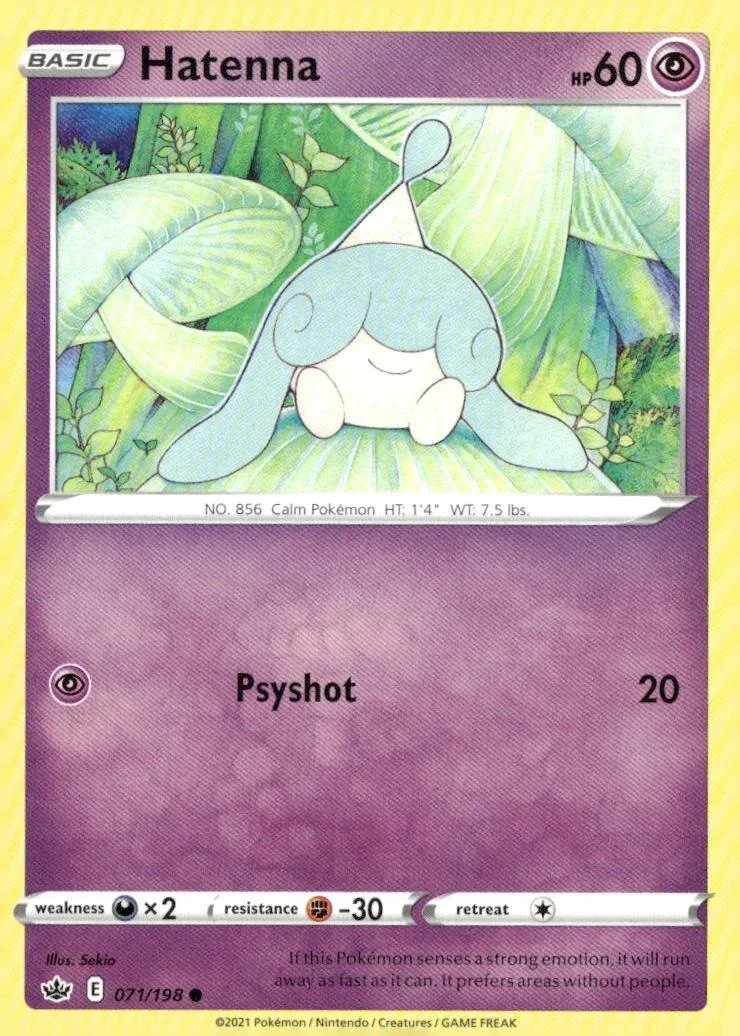 This is a nice example of a SWSH06: Chilling Reign #071/198 Hatenna