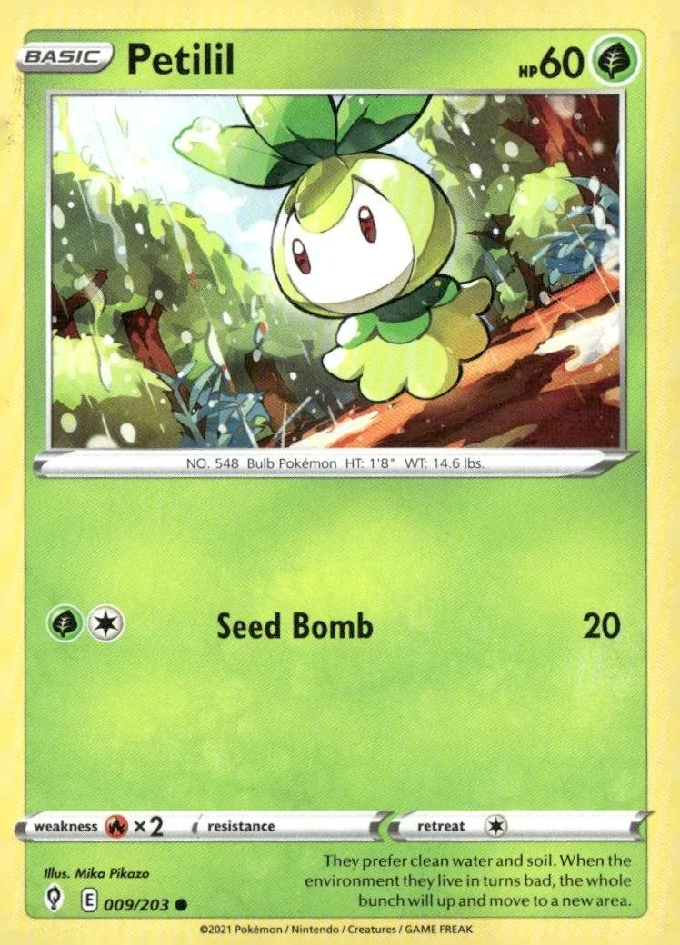 This is a nice example of a SWSH07: Evolving Skies #009/203 Petilil