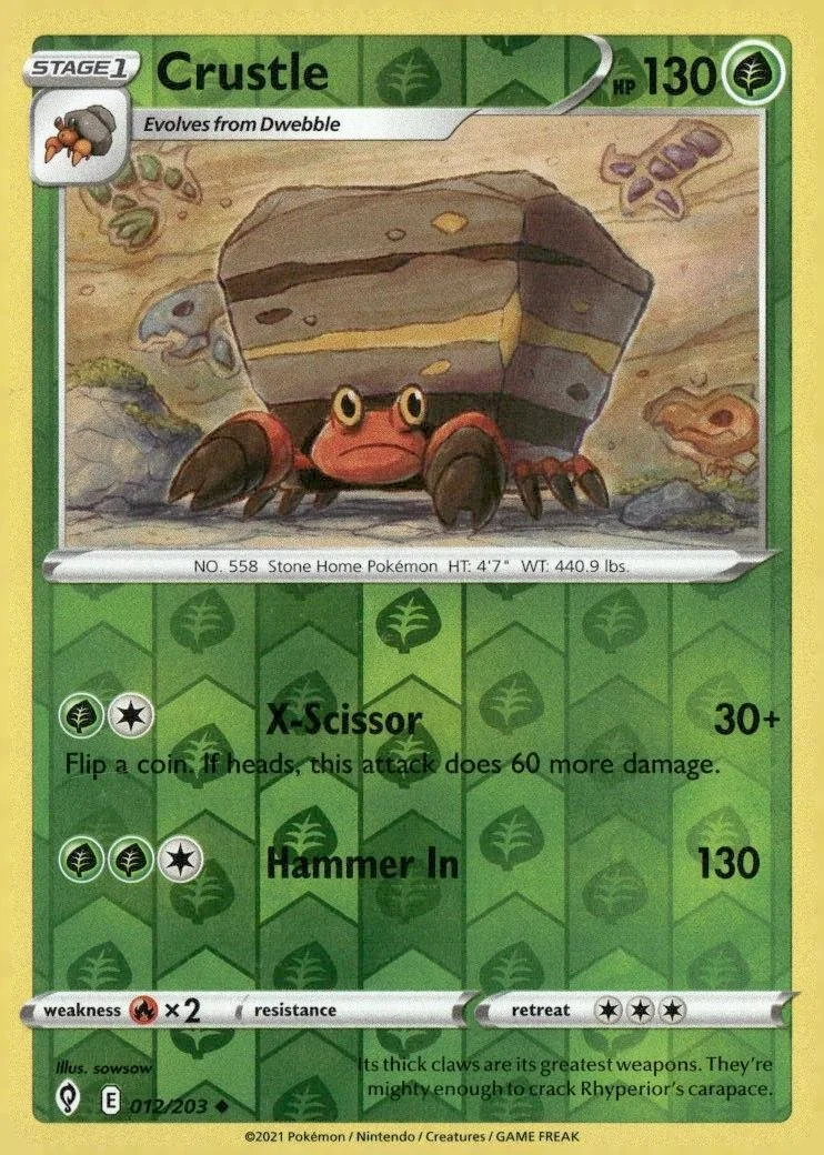 This is a nice example of a SWSH07: Evolving Skies #012/203 Crustle Reverse Holo