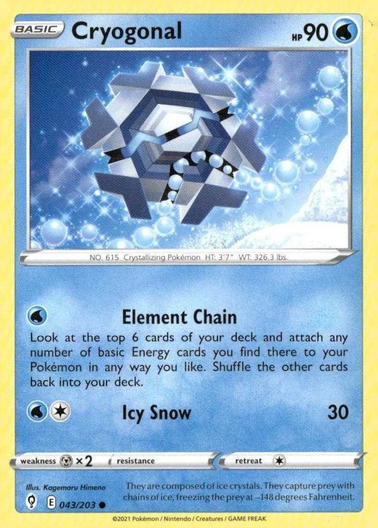 This is a nice example of a SWSH07: Evolving Skies #043/203 Cryogonal