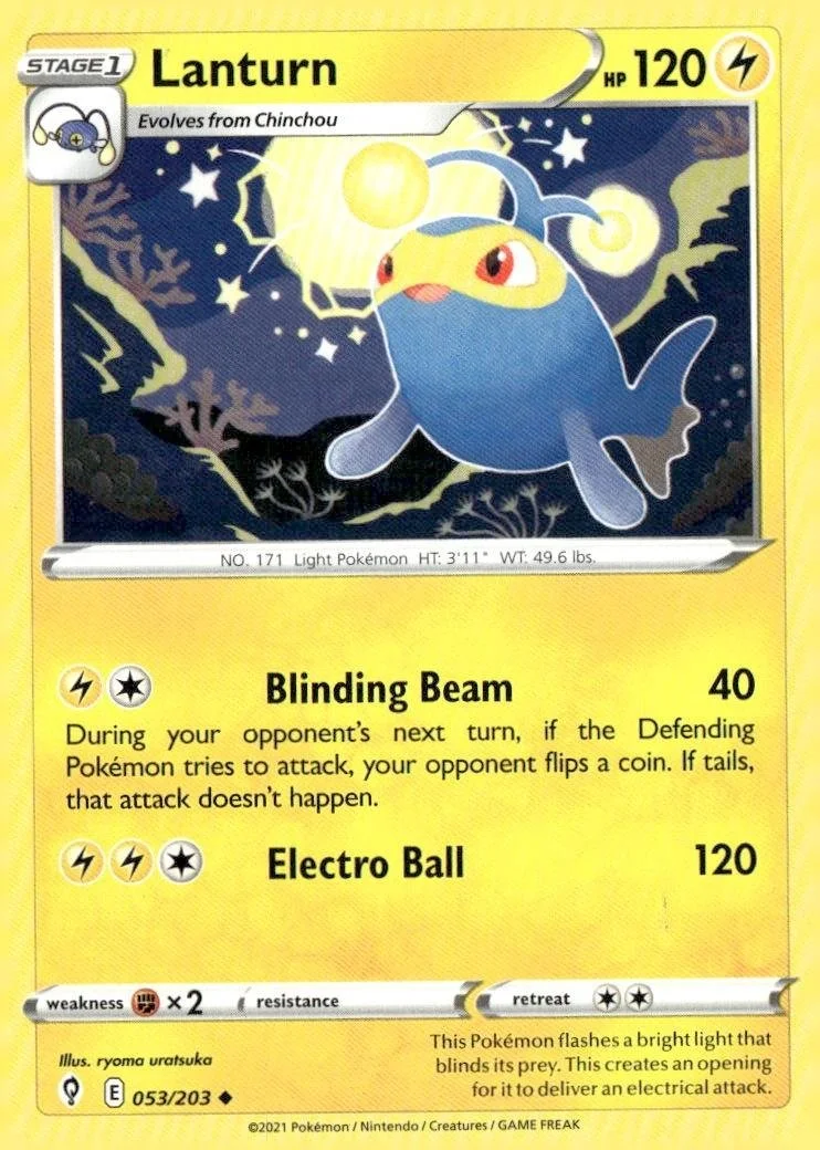 This is a nice example of a SWSH07: Evolving Skies #053/203 Lanturn