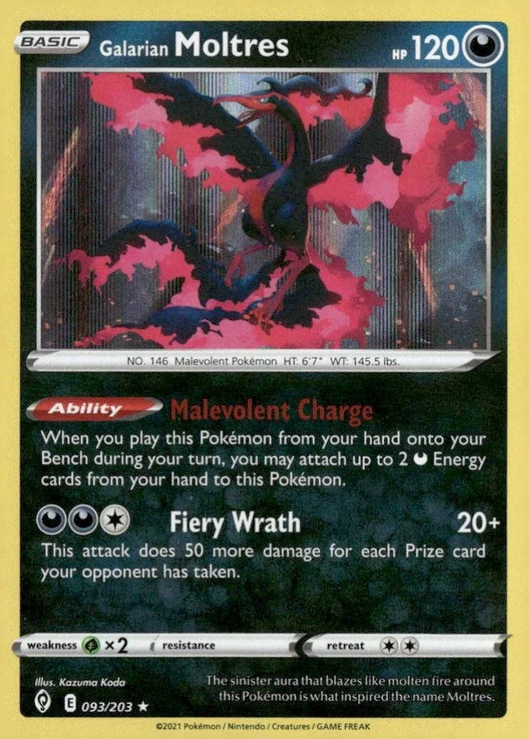 This is a nice example of a SWSH07: Evolving Skies #093/203 Galarian Moltres