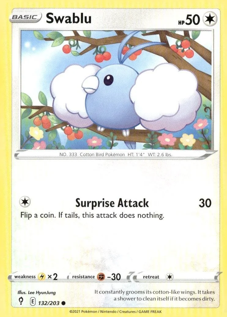 This is a nice example of a SWSH07: Evolving Skies #132/203 Swablu