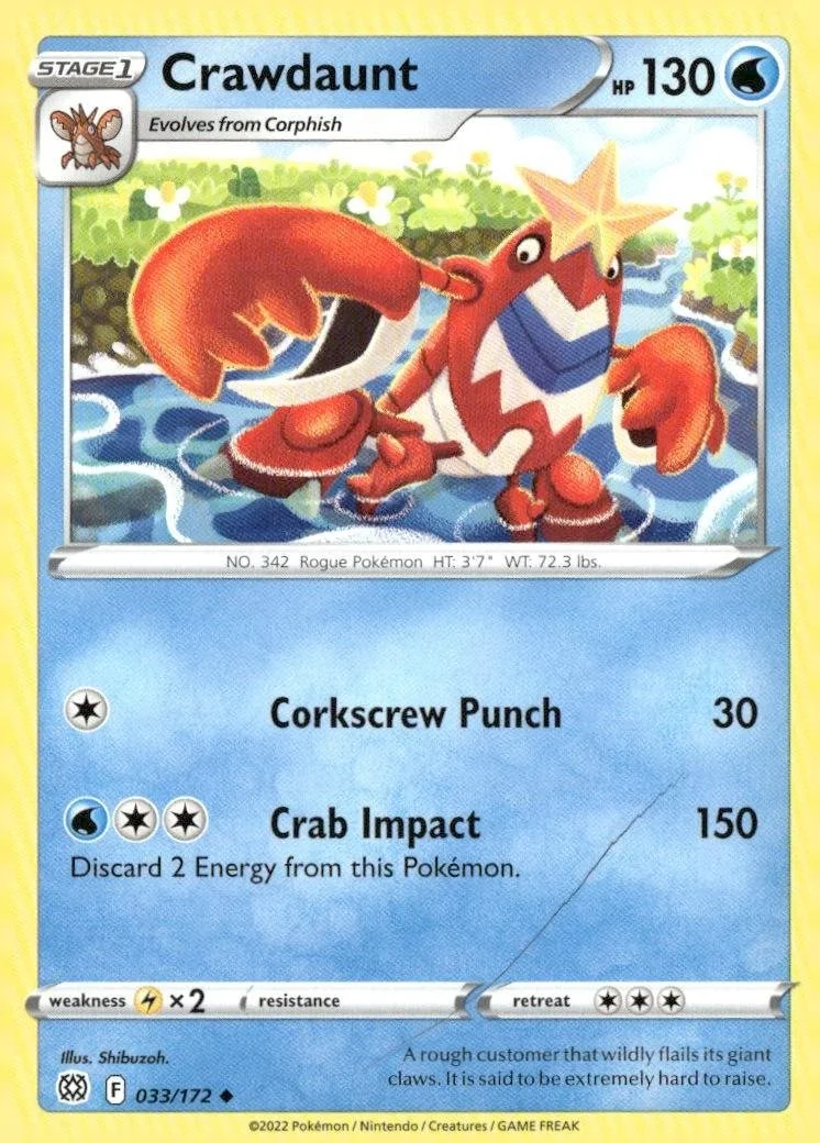 This is a nice example of a SWSH09: Brilliant Stars #033/172 Crawdaunt