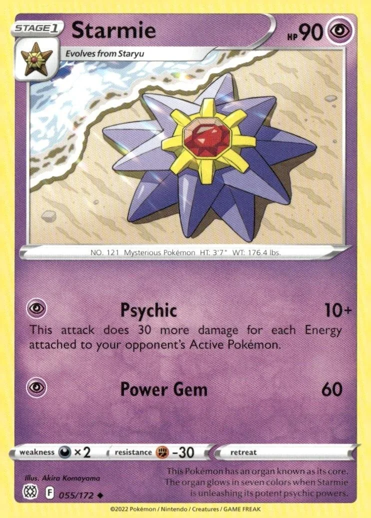 This is a nice example of a SWSH09: Brilliant Stars #055/172 Starmie