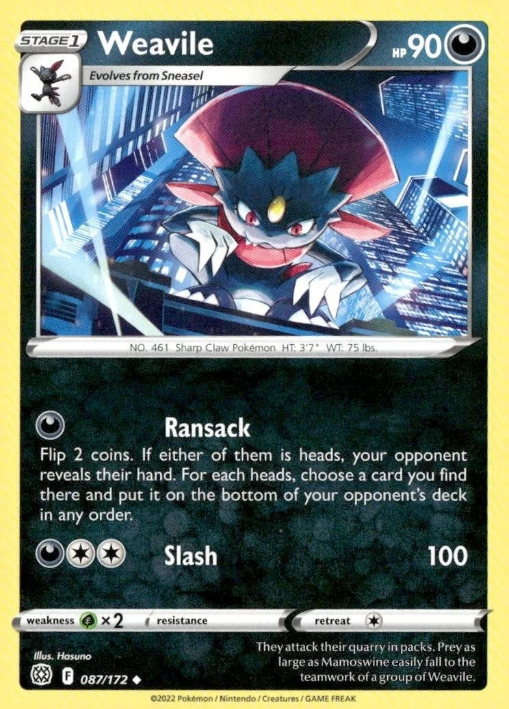 This is a nice example of a SWSH09: Brilliant Stars #087/172 Weavile