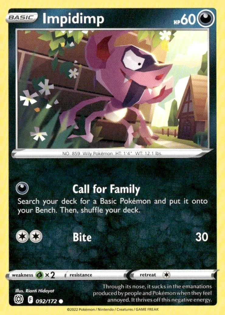 This is a nice example of a SWSH09: Brilliant Stars #092/172 Impidimp