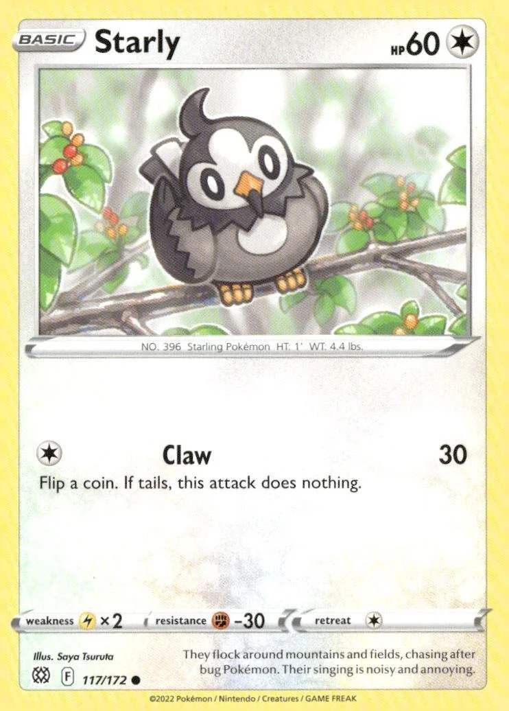 This is a nice example of a SWSH09: Brilliant Stars #117/172 Starly