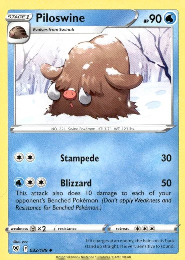 This is a nice example of a SWSH10: Astral Radiance #032/189 Piloswine